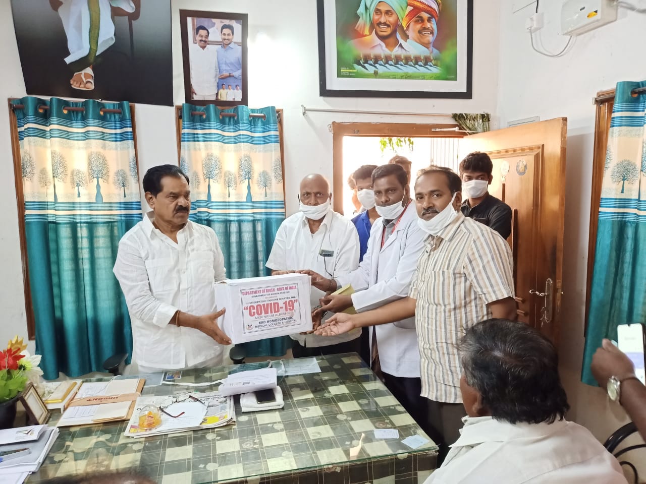 KKC Homoeopathic Medical College and Hospital, Puttur, Chitoor Dt. Vice Chairman Mr.Narasimha Rao, Principal Prof.Dr.G.Saravanan, Met Mr.M.Jayaramulu, Thasildhar of Puttur mandal ,Andra Pradesh and handover the Homoeopathic Immune Booster Medicine “Ars.Alb 30” for “Covid 19” to all the Employees of Thaluk office.