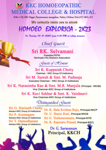 KKC Homoeopathic Medical College and Hospital got approval of 3 Research Projects in Short Term Studentship in Homoeopathi(STSH) from Central Counsil of Homoeoathy (CCRH), Dept. of AYUSH, Govt. of INDIA.